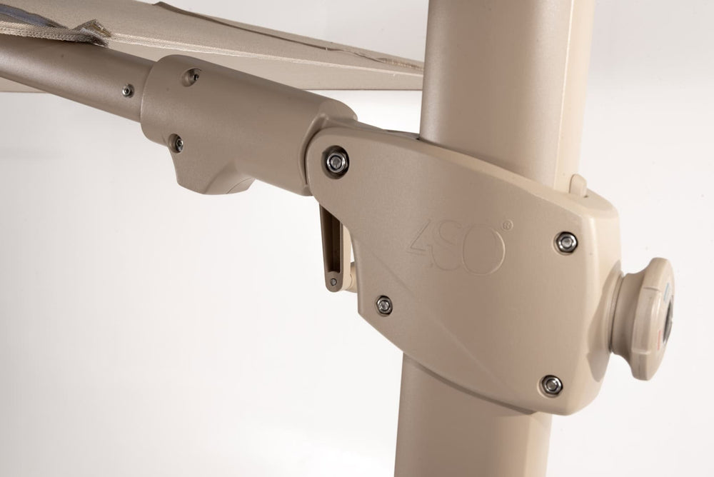 Hoogwaardige Solefin stof zorgt voor optimale bescherming tegen UV stralen en blijft lang mooi van kleur, ook een regenbui is voor dit parasol doek geen probleem. Wel adviseren we de parasol in te klappen wanneer u deze niet gebruikt en een beschermhoes te gebruiken. Het frame heeft ook een aantal bewegende onderdelen, voor het zwenken van de Siesta Premium parasol: na verloop van tijd kan er minimaal onderhoud plaatsvinden en op lange termijn zijn onderdelen na slijtage vaak nog te vervangen.