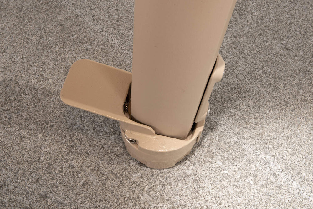 De Siesta parasol heeft meerdere voet mogelijkheden. U kunt kiezen voor een grondverankering (inground base) of voor een voet van graniet. De granieten voet is leverbaar in 90; 125 en 180 kilo. De 90 kg voet geeft in meeste gevallen voldoende stabiliteit. Op plaatsen waar de wind meer dan gemiddeld zich laat voelen, is een zwaardere voet een mogelijkheid.
