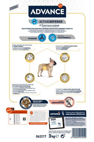 De Advance Mini Sensitive 3 kg is smakelijk en licht verteerbaar hondenvoer, speciaal ontwikkeld voor kleine, volwassen honden (tot 10 kg) met een gevoelige maag of huidproblemen.