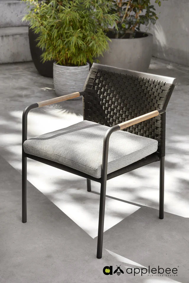 - zwart aluminium frame met zwart rope &belt weaving, SVLK teak arm natural,