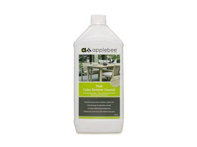 Apple Bee Teak Color Restore Coastal is bedoeld voor teakproducten met de Coastal finish. Net als de Color Restore Antique is dit onderhoudsproduct 100% op waterbasis. Na een behandeling met de Teak Color Restore Coastal zal de grijze coastal kleur van het teakhout langer behouden worden, bovendien is het teak hiermee ook beschermt tegen vocht, schimmels, algen en UV-straling. Gebruik het product volgens het gebruikersvoorschrift en geniet langer van uw coastal teakmeubelen.