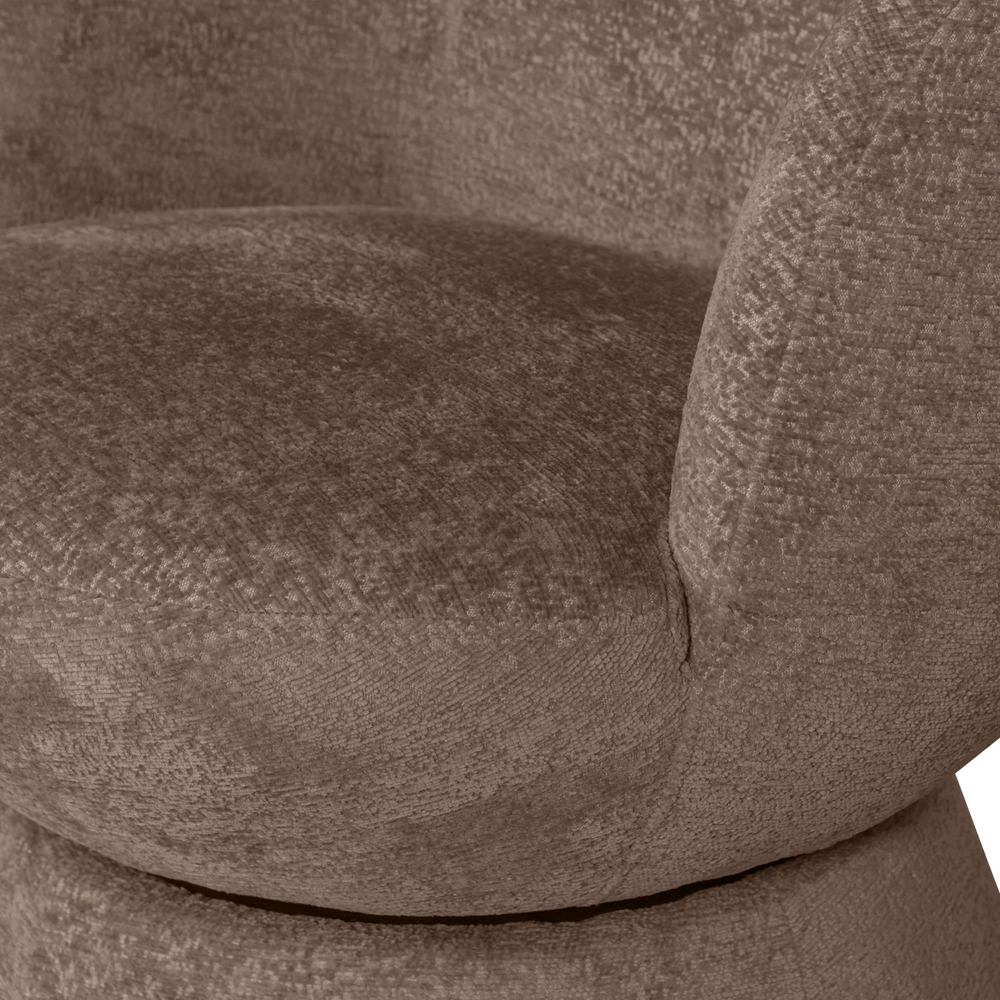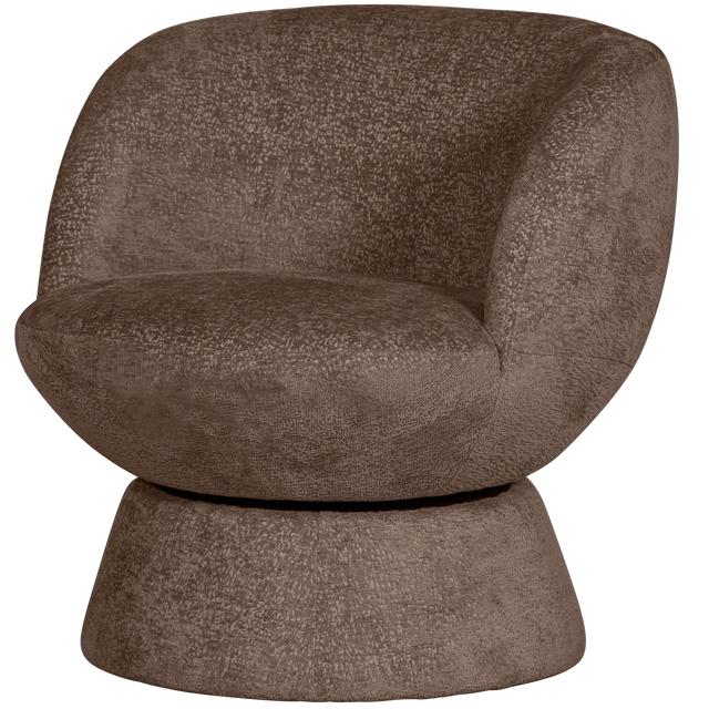 De Shuffle draaifauteuil komt uit de collectie van het Nederlandse merk BePureHome en heeft een vriendelijke, zachte uitstraling. De zitting en voet vormen een zandloperfiguur en zijn van top tot teen bekleed met een grof geweven stof met luxueuze lichtweerkaatsing.