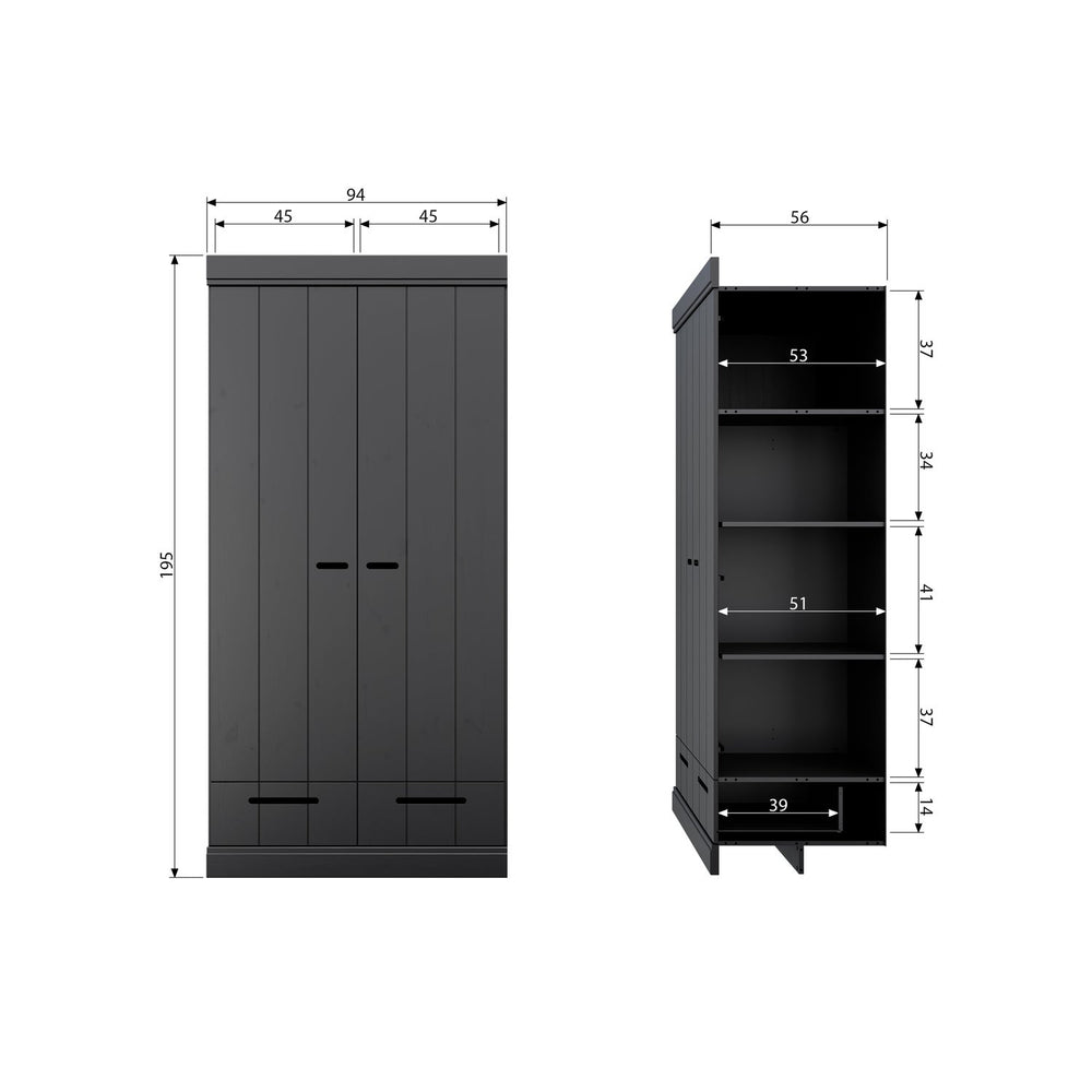 CONNECT 2-DEURS KLEDINGKAST + LADE ZWART [fsc]