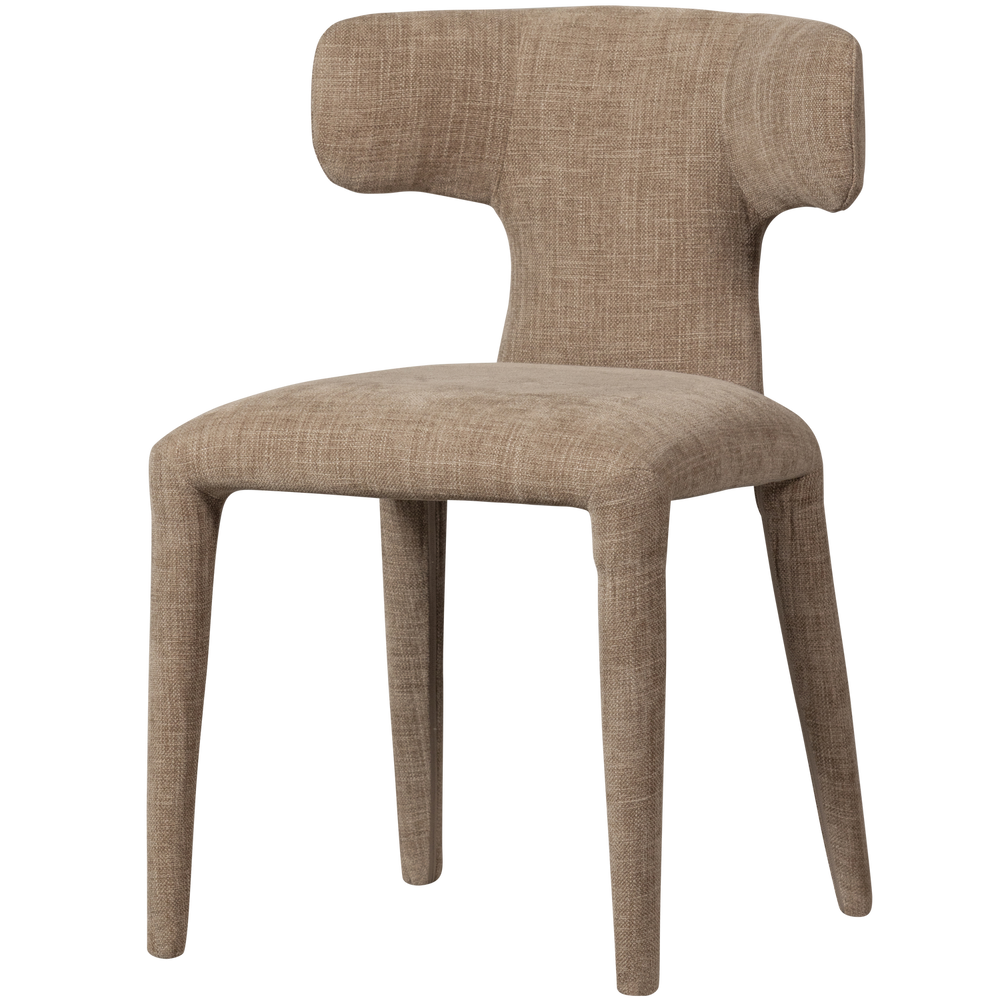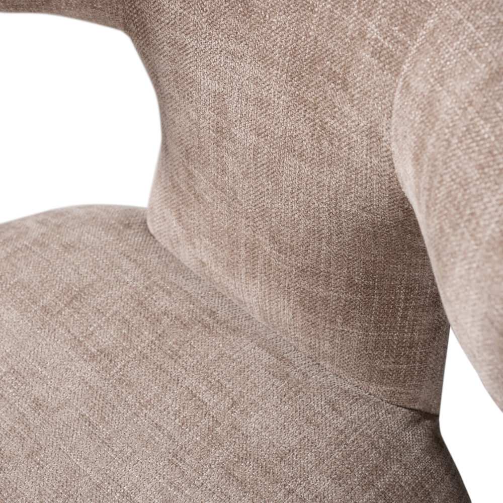 De stoel is opgebouwd uit een stalen frame met een multiplex zitting, in zijn volledigheid bedekt met een PU foam laag en van top tot teen bekleed met onze Tintle geweven stof. Onze Tintle geweven stof heeft een zachte grip en voelt comfortabel aan. De compact geweven stof is gemaakt van 100% polyester en heeft een Martindale van 100.000. De stof is opvallend door de lichte kleurmelange in de garens, wat zorgt voor een sprekende diepte in het meubelstuk.