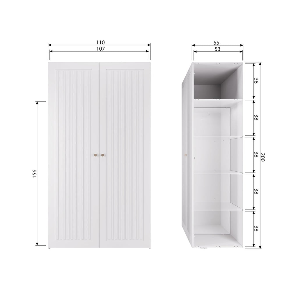 Op zoek naar een royale kledingkast? Dan is Sipke de juiste keuze! Tweedeurskast Sipke komt uit de collectie van het Nederlandse interieurmerk WOOOD en is gemaakt van FSC-mix gecertificeerd grenenhout in een helder wit. De Sipke kast bevat standaard een legplank en een royaal hanggedeelte. De serie beschikt over een optioneel interieurpakket van drie legplanken voor meer vlakke opberggelegenheid.