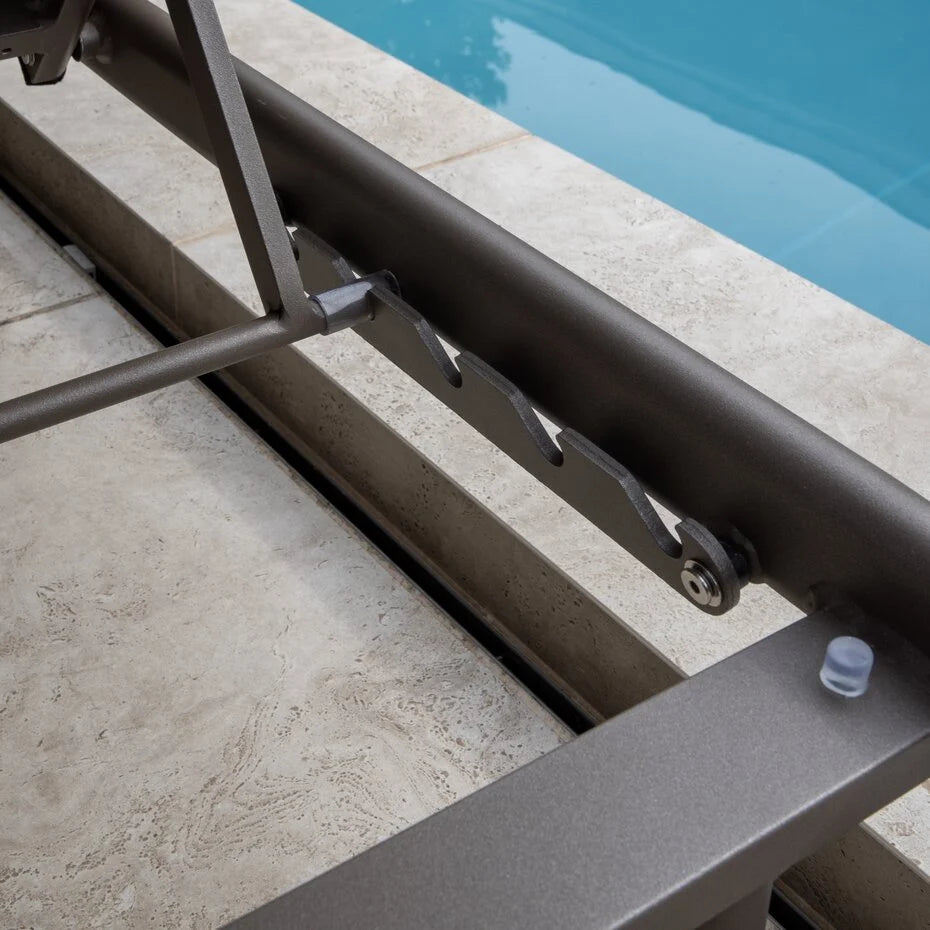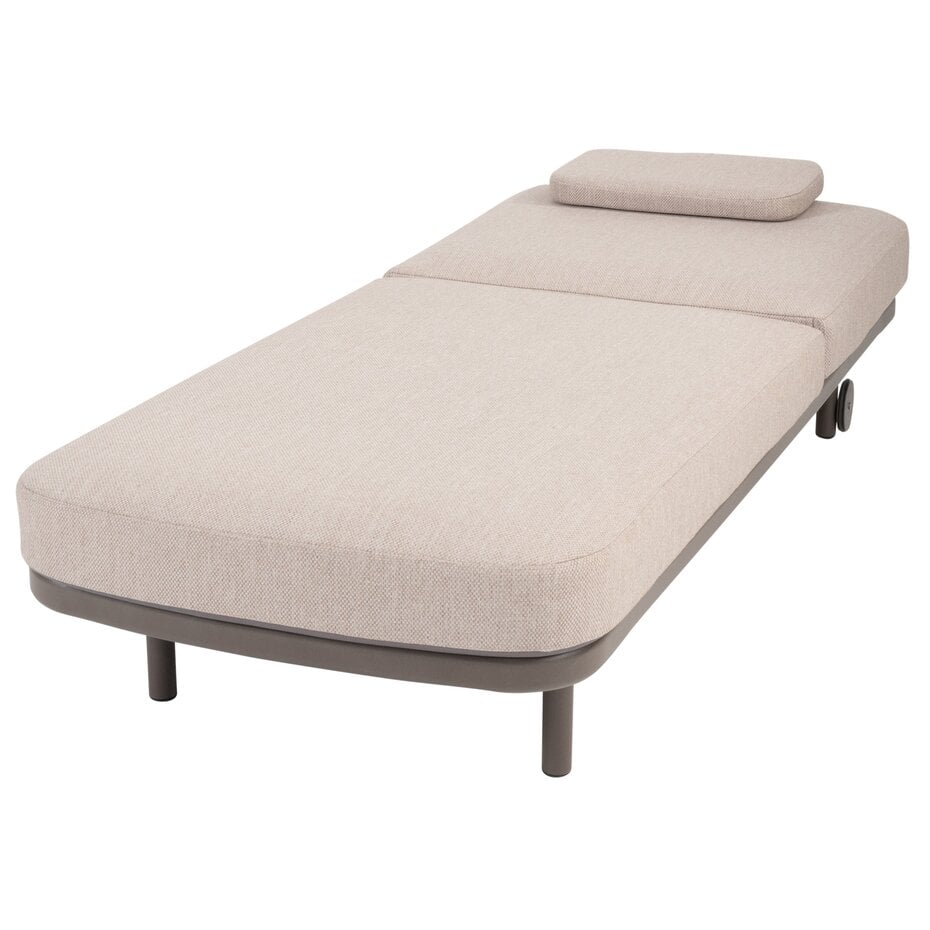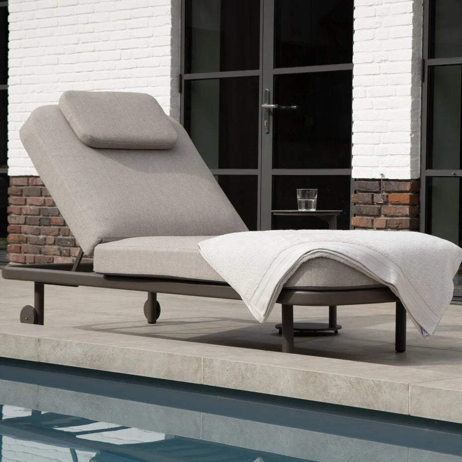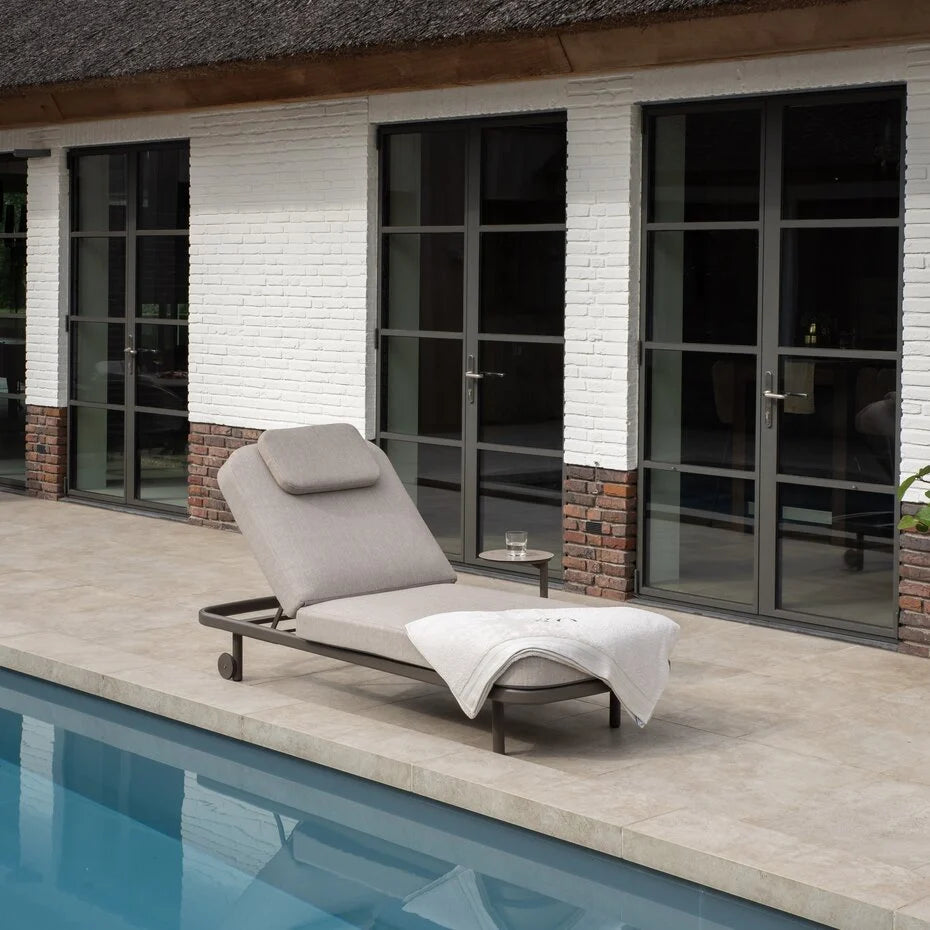 De rugleuning is verstelbaar, zodat je moeiteloos de ideale stand kunt kiezen, van rechtop lezen tot volledig ontspannen zonnebaden. Dankzij de praktische wielen aan de achterzijde is het ligbed eenvoudig te verplaatsen, zodat je altijd optimaal van de zon kunt genieten.