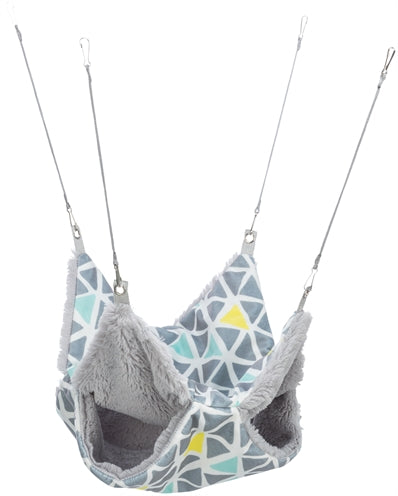 De Trixie Hangmat Sunny Met 2 Verdiepingen Voor Grote Hamsters En Degoes Pluche 30X30 cm is een slaapplekje voor grote hamsters en degoes om op te hangen in de kooi. Dit vrolijke holletje zal de favoriete slaapplek zijn van jouw grote hamster of degoe. Hang deze hangmat op in de kooi aan de haakjes op een plek waar jouw kleine vriendje de ingang makkelijk kan bereiken. Het vrolijke printje en zachte pluche maken het helemaal af.