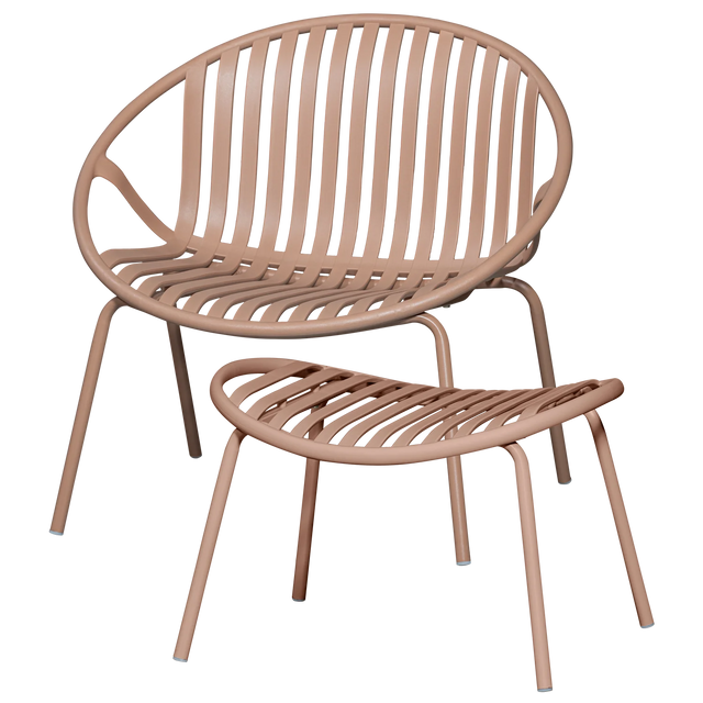 WOOOD - Bruce tuin fauteuil + hocker pp/metaal zalm roze