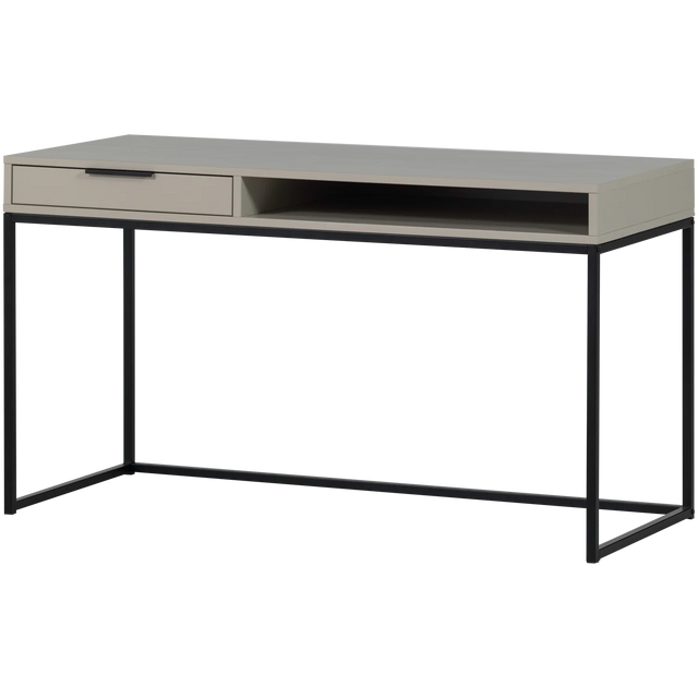 Dit item is gemaakt van grenenhout, heeft een geschuurde afwerking en is afgelakt in de kleur dust. Het onderstel is van zwart metaal. De grenenhouten meubelen uit onze collecties zijn afkomstig van een FSC-gecertificeerde leverancier en worden op diverse manieren behandeld. Zo is geschuurd grenen zeer glad en netjes afgewerkt. Grenenhout wordt gekenmerkt door een lichtgele kleur en zichtbare vlamtekeningen. Het Nore bureau heeft een mist HDF ladebodem.