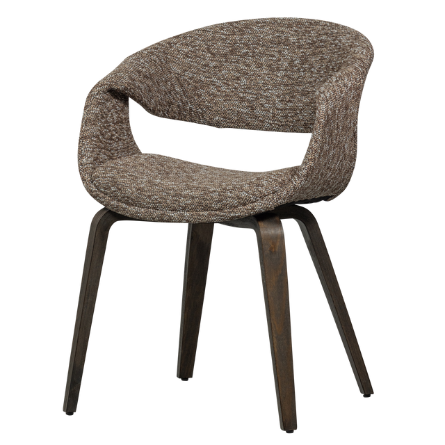 De Yossi eetkamerstoel komt uit de collectie van het Nederlandse merk WOOOD en heeft een stevig houten onderstel en een comfortabele zit. De stoel is in verschillende uitvoeringen verkrijgbaar, zodat je de perfecte match voor jouw interieur kunt vinden. De Yossi is bekleed met een geweven stof van 100% polyester, wat zorgt voor een stijlvolle uitstraling. Een bijzonder detail is de afwerking rondom de armleuning. Deze elegante en comfortabele eetkamerstoel is perfect om urenlang te tafelen.